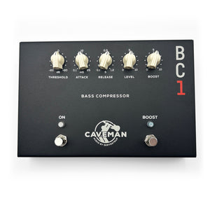 A BOOST circuit is not common on compressor pedals, but then again, the BC1 is a different beast! Caveman Audio recommends using the BC1 as a master compressor at the end of your signal chain, which might have left you with problem...What about them bass solos? Youâd probably kick in a boost pedal for that, but since the BC1 is sitting after a boost pedal, the signal coming into the BC1 would be hotter, and the BC1 would simply compress more.