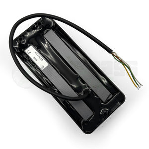 The 9.5 mm pole slugs and two XL size coils capture every aspect of your strings vibrations and transform them into fullspectrum dynamic bass energy. Fat sub-lows but clear fundamentals, ultra fast transient attack and crunchy mid-presence highlited by an incredibly clear and open top end that further brightens up when the coils are switched to parallel. No low register breakup with low drop tunings and aggressive playing. This beast loves slammin´ and massive tone tweaking, but it is equally able to deliver a wide range of rather civilized tones.