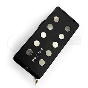 Delano's fivestring dual coil humbucker MC 5 FE/EB with exposed polepieces represents the cutting edge of modern fivestring bass tone.