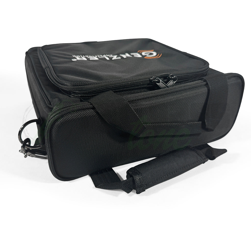 Made from heavy-duty, water resistant vinyl material, the bag features upgraded zippers, a large front pocket, sturdy handles and a comfortable, detachable carry strap. Along with a soft-plush lining the carry bag uses 15mm padding around every surface of the protective compartment. The front pocket is large enough for a variety of accessories like cables, tuners, etc.